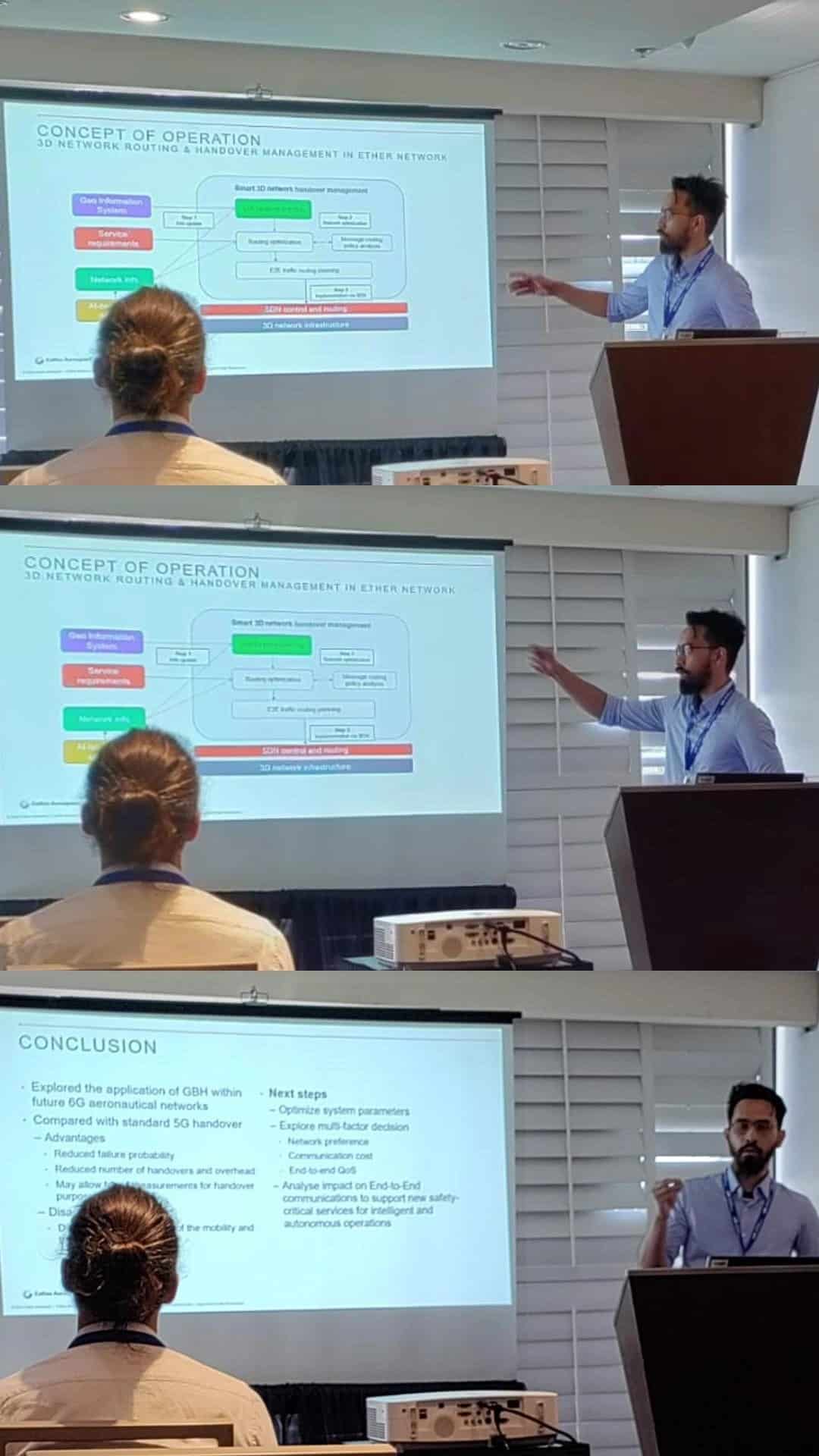 The highlight of the event was the Best of Session Award for the paper on “Intelligent Message Routing and Optimization for Aircraft in 6G Terrestrial and Non-Terrestrial Networks.” This work captured the attention of the Aeronautical Communication Systems and Networks community, particularly those focused on 6G Non-Terrestrial Networks for UAV and aeronautical applications. The paper introduces innovative routing and optimization techniques for aircraft communications, contributing to seamless global connectivity across terrestrial, high-altitude, and satellite networks.